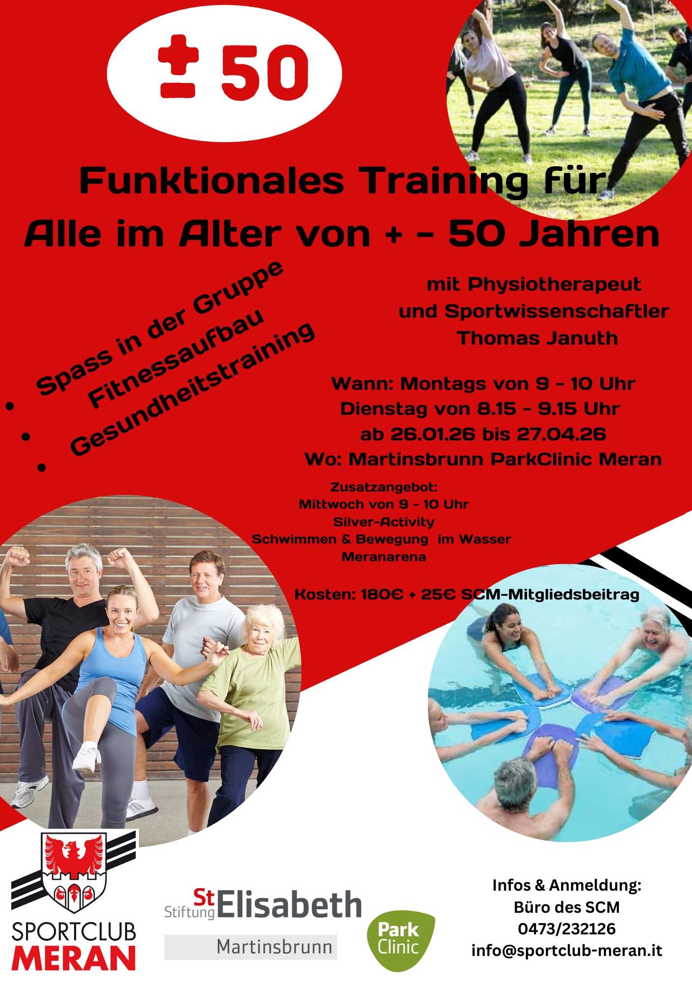 Der Sportclub Meran wünscht allen Mitgliedern und Gönnern ein ruhiges und besinnliches Weihnachtsfest sowie ein erfolgreiches und gesundes neues Jahr. Wir bedanken uns bei Land, Gemeinde und VSS für die gute Zusammenarbeit und Förderung unseres Vereines. Ein besonderer Dank geht an die Sponsoren, ohne deren Unterstützung die Vereinstätigkeit nicht mehr möglich wäre. Ein herzliches Dankeschön auch allen Sektionsleitern/innen und Funktionären sowie Trainingsleiter/innen in den verschiedenen Sektionen! Den Athleten und Athletinnen wünschen wir viel Erfolg, Trainingseifer und vor allem Spaß im Hinblick auf die bevorstehenden Herausforderungen.